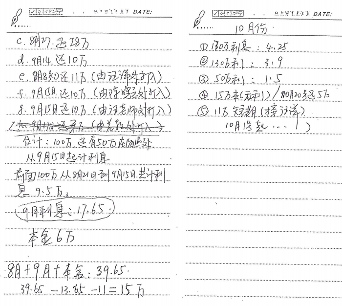 在偿还问题上,他指出范颖虽曾支付利息,但从未归还本金。他提供的“记账单”显示,截至2013年10月仍在支付利息,未见有归还本金的记录。