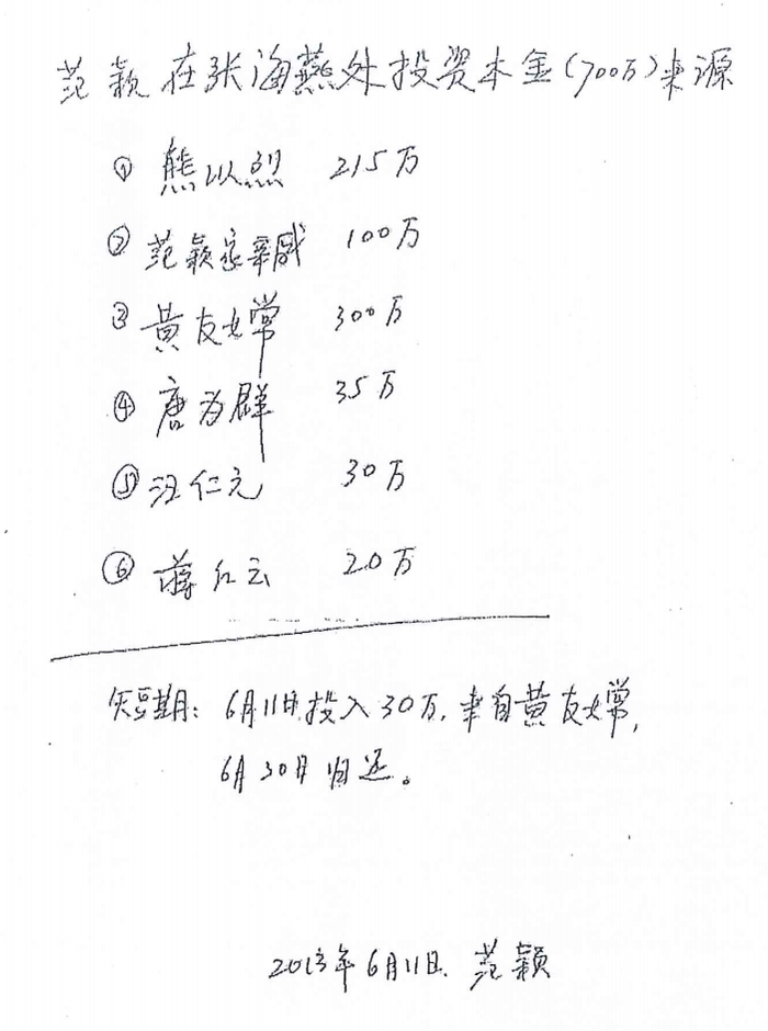黄友嫦声称,范颖不仅是诈骗案的受害人,更是她的债务人。依据包括两张分别为50万元和120万元的借条,以及一份据称由范颖亲笔书写的“范颖在张海燕处投资本金700万来源”记账单和其他一些记账草稿。