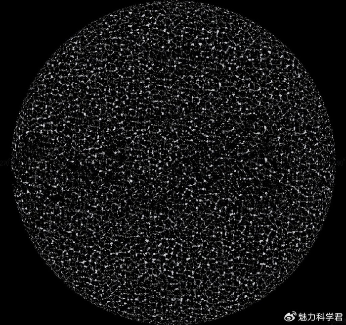 到这里,纸张的厚度已达到大约133.9亿光年,作为对比,已知宇宙中最大的结构——武仙-北冕座长城,其跨度估计是大约100亿光年。好的,现在我们把剩下的次数一口气折完。