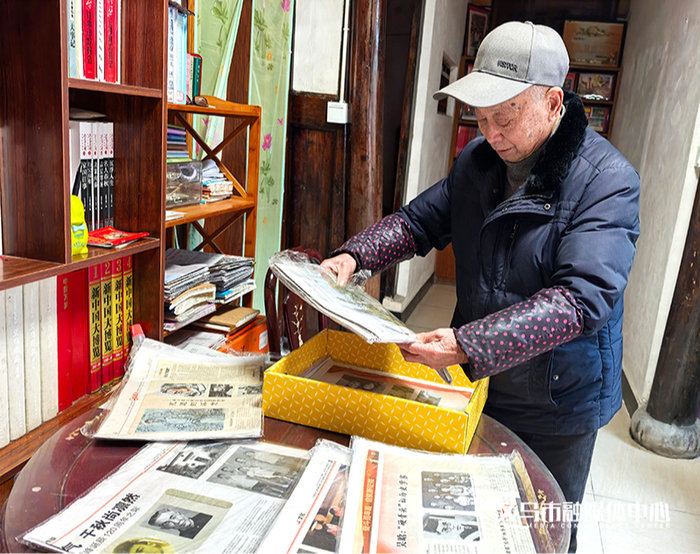 安静的乡村老屋里,只有翻阅纸页的声响。千份报纸在箱中“安睡”,41本剪报册在柜中“站立”,它们共同见证着一位九旬老人用最朴素的方式,为一座城市编织记忆的脉络。