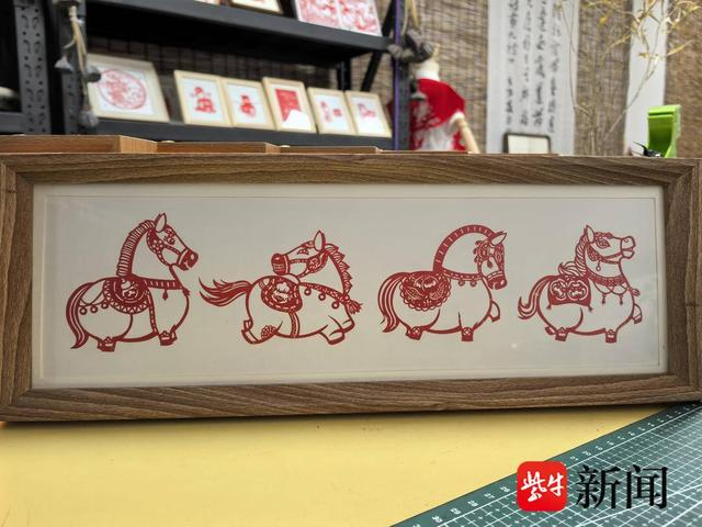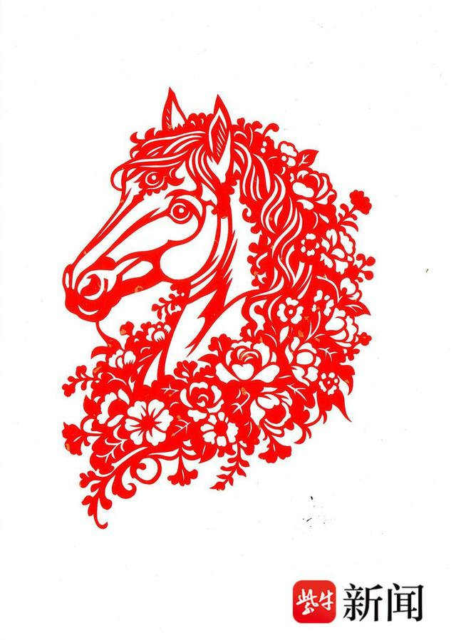 “剪纸不仅是一门指尖的手艺,更是与传统民俗、历史文脉跨越时空对话的方式。”作为建湖县图书馆馆长、冈西剪纸市级非遗传承唐进文,对这门非遗艺术有着深刻的理解与坚守。在创作中,作品里的骏马昂首昂扬、鬃毛飘逸,搭配牡丹、枝蔓等传统吉祥纹样,造型灵动大气、气韵饱满,将马的昂扬气魄与剪纸的精巧美感相融,呈现出鲜明的艺术辨识度。